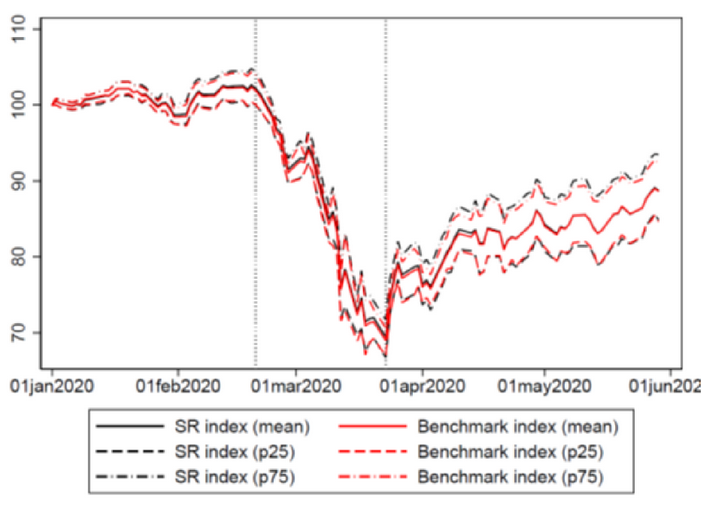 By matching socially responsible (SR) stock indexes worldwide with their conventional benchmarks, the authors study the resilience of SR investment strategies during the COVID-19 crisis. Overall, SR indexes exhibited dynamics very similar to their benchmarks. The sample is composed of 573 SR stock indexes from MSCI, STOXX, and FTSE. In the first half of 2020, the average daily return was –0.11% for SR indexes and their benchmarks, with annualized volatility of 40% for each. SR indexes remained very close to their benchmarks during both the fever period (February 24–March 20) and the rebound period (March 23–May 29). The financial performance of SR strategies shows substantial heterogeneity, however, with SR impact strategies slightly outperforming their benchmarks. In addition, the resilience of SR strategies was a little stronger in countries and during periods in which the number of COVID-19 cases was increasing. In robustness checks, the authors control for public attention to the COVID-19 pandemic, as well as the economic effects of new policies implemented during the crisis, including lockdowns, and fiscal and monetary policy changes. Their findings call for careful SR investment selection because not all such investments have provided equal returns in the face of the COVID pandemic.